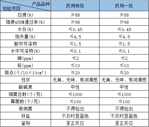 "海達(dá)牌"超細(xì)滑石粉是選用優(yōu)質(zhì)滑石礦為原料,經(jīng)過(guò)采選、水洗、風(fēng)干、破碎、研磨等工序加工而成。每道工序,都嚴(yán)格按照中國(guó)藥典2010版的操作規(guī)格和檢測(cè)標(biāo)準(zhǔn)進(jìn)行生產(chǎn),最終產(chǎn)品經(jīng)檢測(cè)合格后,才準(zhǔn)予包裝出廠(chǎng)。產(chǎn)品應(yīng)用于西藥、中成藥、糖漿輔藥.